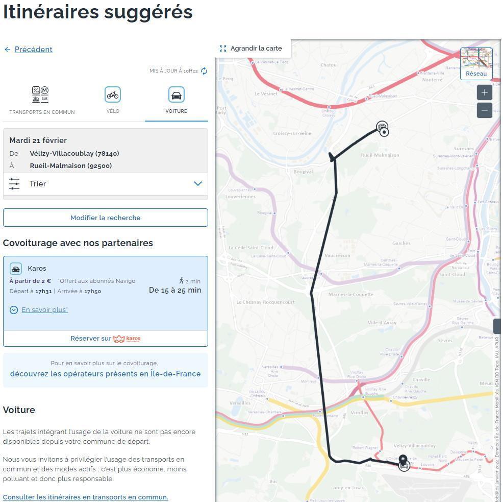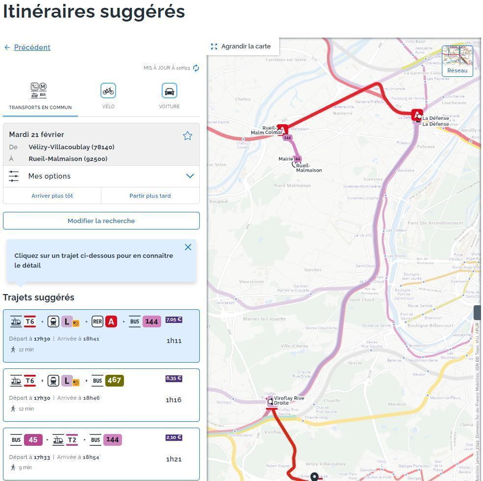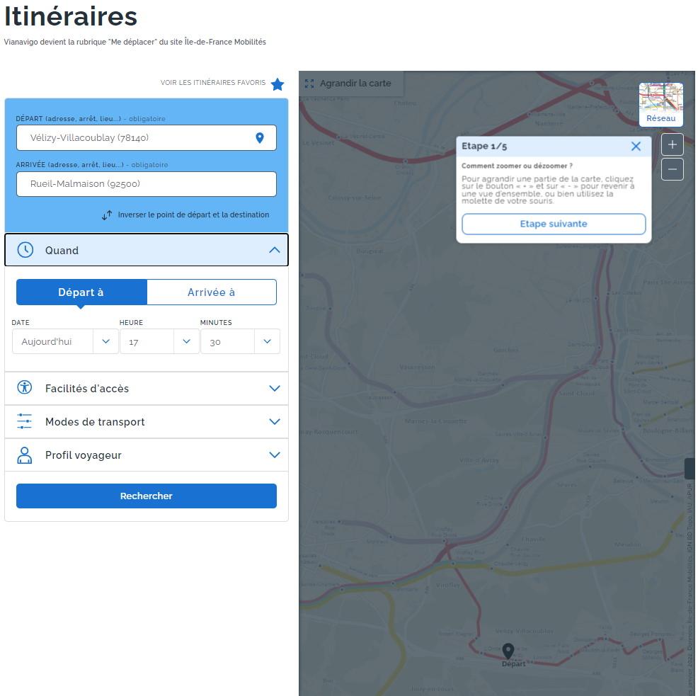 [image 1] vous lancez une recherche d'itinéraires, ici de Vélizy à Rueil